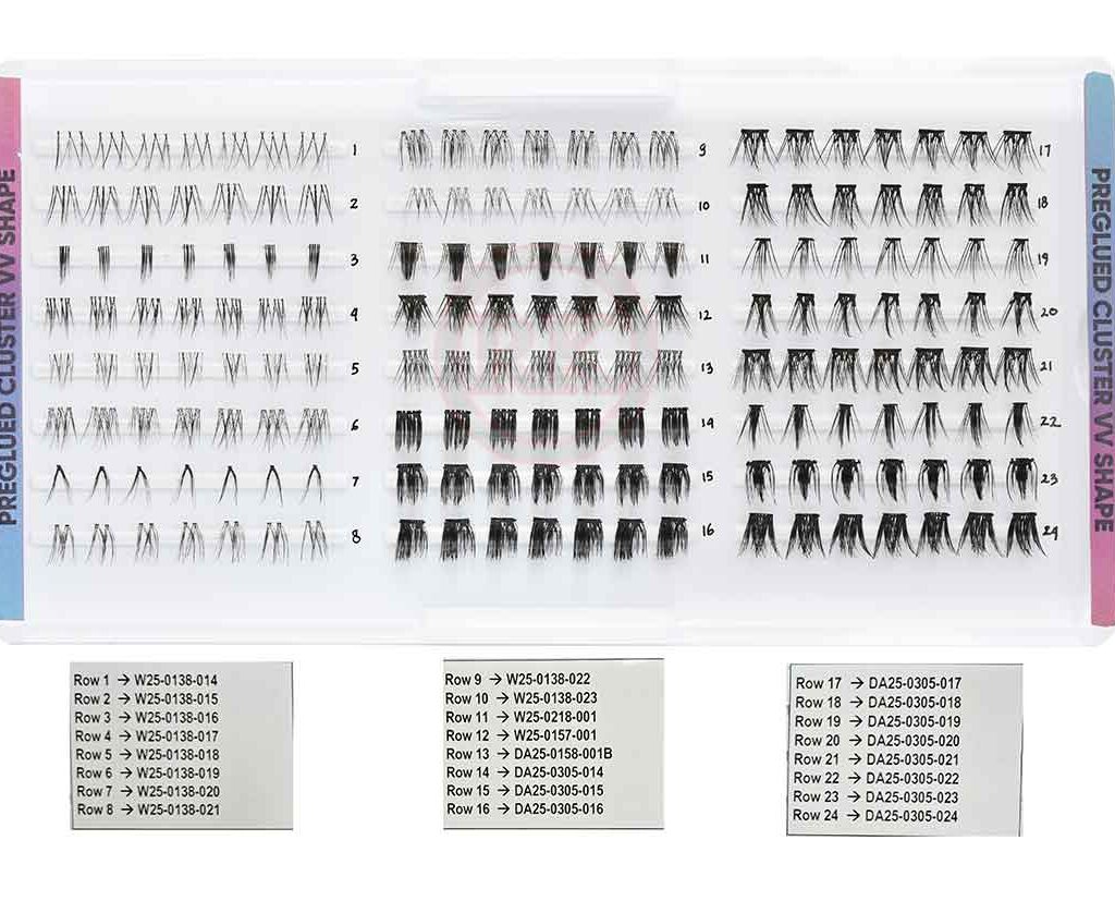 We had tested our VV preglued and single line preglued, it stay for up to 15–24 hours, depending how much you touch your eyes/ lashes. We offer preglued Underlash Preglued Striplash and Preglued Cluster, you may check the images below: